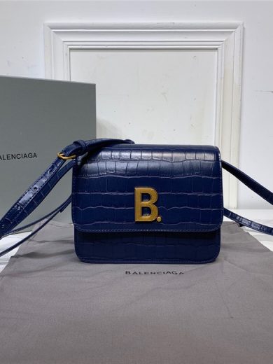 BALENCIAGA B. SMALL BAG IN BLUE SHINY CROCODILE EMBOSSED CALFSKIN 5928981LR7M4611