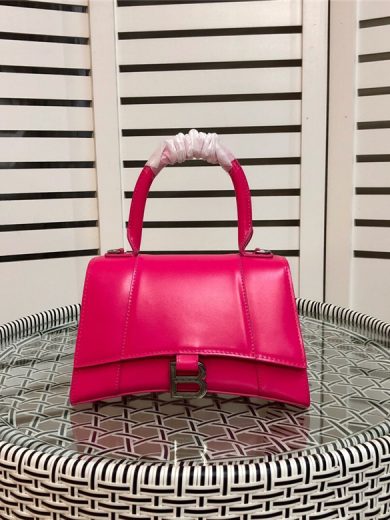 BALENCIAGA HOURGLASS SMALL TOP HANDLE BAG IN BRIGHT PINK SHINY BOX CALFSKIN 5935461JH1Y5611