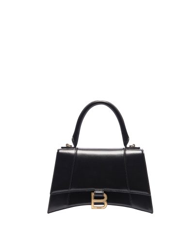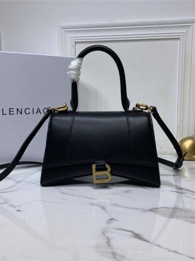 BALENCIAGA HOURGLASS SMALL TOP HANDLE BAG IN BLACK SHINY BOX CALFSKIN 5935461QJ4M1000