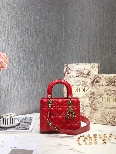 DIOR SMALL LADY DIOR MY ABCDIOR BAG CANNAGE LAMBSKIN CHERRY RED M0538OCAL_M52R