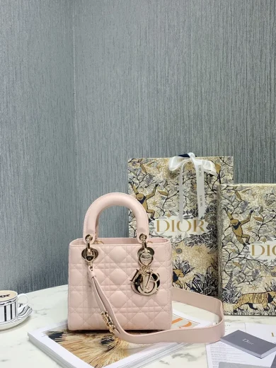 DIOR SMALL LADY DIOR MY ABCDIOR BAG CANNAGE LAMBSKIN POWDER PINK M0538OCAL_M413
