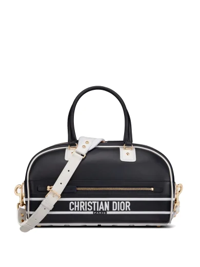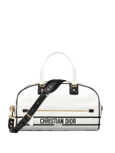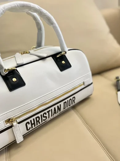 DIOR MEDIUM DIOR VIBE ZIP BOWLING BAG WHITE SMOOTH CALFSKIN M6202OOBR_M879