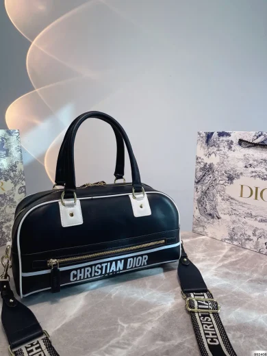 DIOR MEDIUM DIOR VIBE ZIP BOWLING BAG BLUE SMOOTH CALFSKIN M6202OOBR_M928
