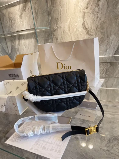 DIOR MEDIUM DIOR VIBE HOBO BAG BLACK CANNAGE LAMBSKIN M7201ONOA_M911