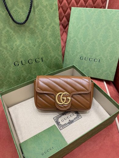 GUCCI GG MARMONT MATELASSÉ SUPER MINI BAG BROWN LEATHER 476433 0OLFT 2535