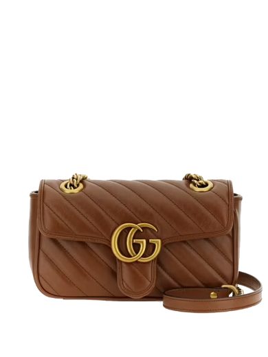 GUCCI GG MARMONT MINI MATELASSÉ SHOULDER BAG BROWN LEATHER 446744 0OLFT 2535