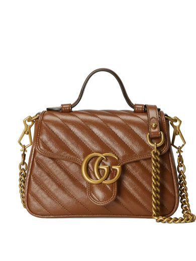 GUCCI GG MARMONT MINI TOP HANDLE BAG BROWN LEATHER 583571 0OLFT 2535