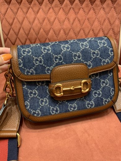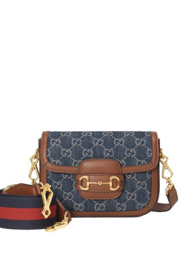 GUCCI HORSEBIT 1955 MINI BAG LEATHER GG JACQUARD DENIM DARK BLUE 658574 2KQPG 8391
