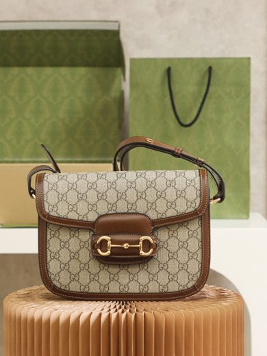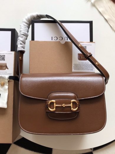 GUCCI HORSEBIT 1955 SHOULDER BAG TEXTURED LEATHER BROWN 602204 1DB0G 2361