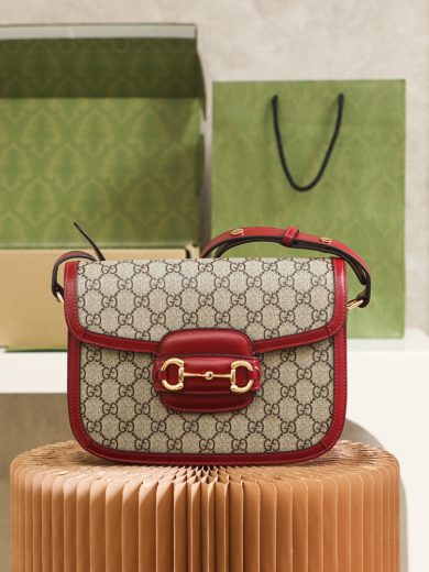 GUCCI HORSEBIT 1955 SHOULDER BAG GG SUPREME CANVAS RED LEATHER TRIM 602204 92TCG 8561