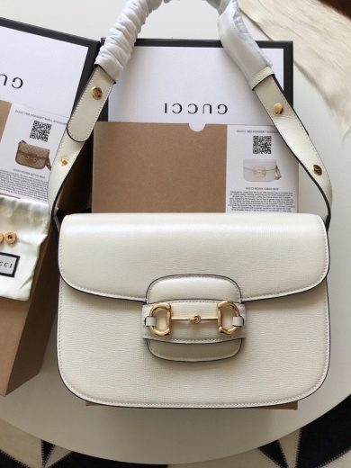 GUCCI HORSEBIT 1955 SHOULDER BAG TEXTURED LEATHER WHITE 602204 1DB0G 9022