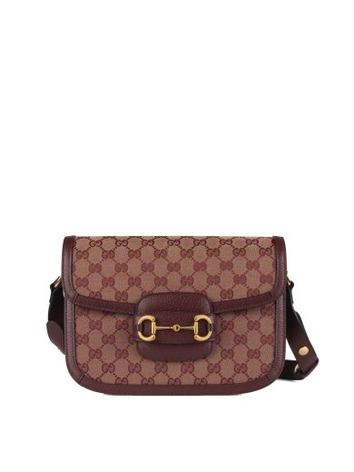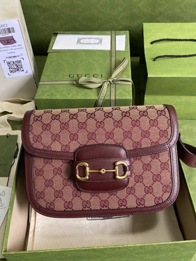 GUCCI HORSEBIT 1955 SMALL SHOULDER BAG ORIGINAL GG CANVAS BURGUNDY LEATHER TRIM 602204 9Y9NG 9865