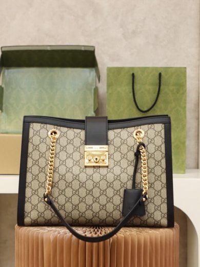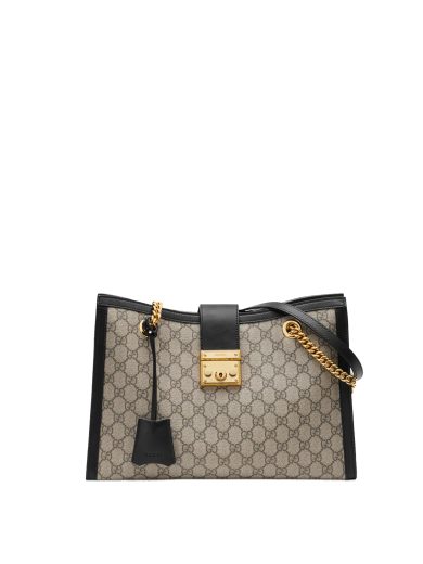 GUCCI PADLOCK MEDIUM GG SHOULDER BAG BEIGE/EBONY GG SUPREME CANVAS BLACK 479197