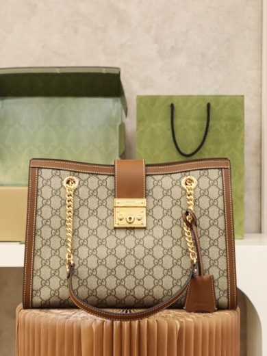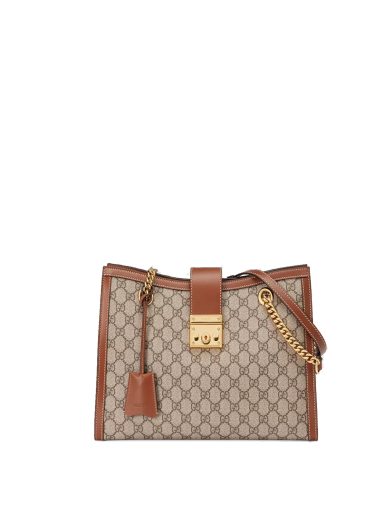 GUCCI PADLOCK MEDIUM GG SHOULDER BAG BEIGE/EBONY GG SUPREME CANVAS BROWN 479197