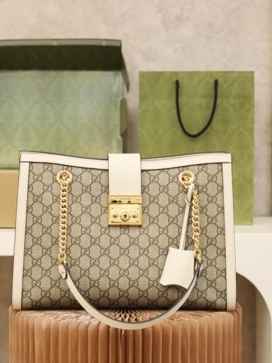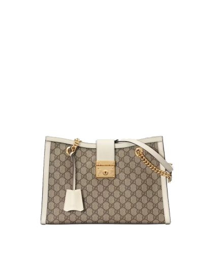 GUCCI PADLOCK MEDIUM GG SHOULDER BAG BEIGE/EBONY GG SUPREME CANVAS WHITE 479197
