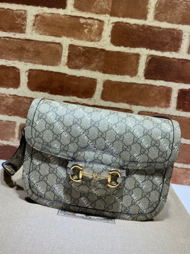 GUCCI X BALENCIAGA THE HACKER PROJECT SMALL GUCCI HORSEBIT 1955 BEIGE EBONY 602204 ULZ0G 9745