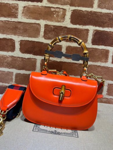GUCCI SMALL TOP HANDLE BAG WITH BAMBOO ORANGE LEATHER 675797 10ODT 7768