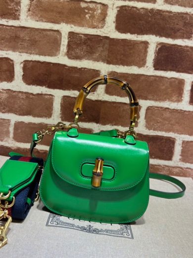 GUCCI SMALL TOP HANDLE BAG WITH BAMBOO GREEN LEATHER 675797 10ODT 3384