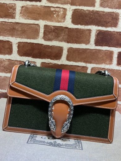 GUCCI DIONYSUS SMALL SHOULDER BAG DARK GREEN WOOL FABRIC 400249 HS3KN 3382