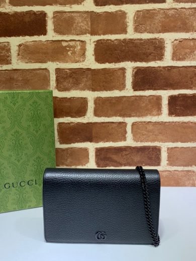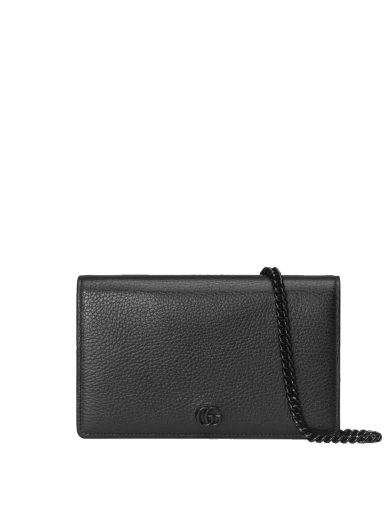GUCCI GG MARMONT CHAIN WALLET BLACK LEATHER 497985