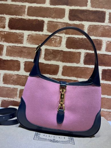 GUCCI JACKIE 1961 SMALL SHOULDER BAG PINK CORDUROY 636706