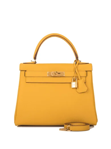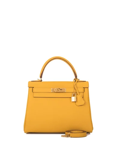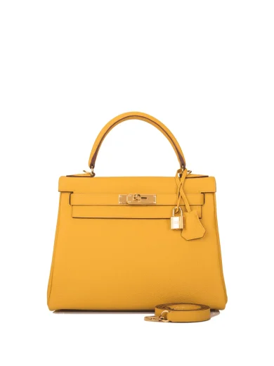 HERMES KELLY 28 TOGO RETOURNE LEATHER GOLD HARDWARE AMBRE