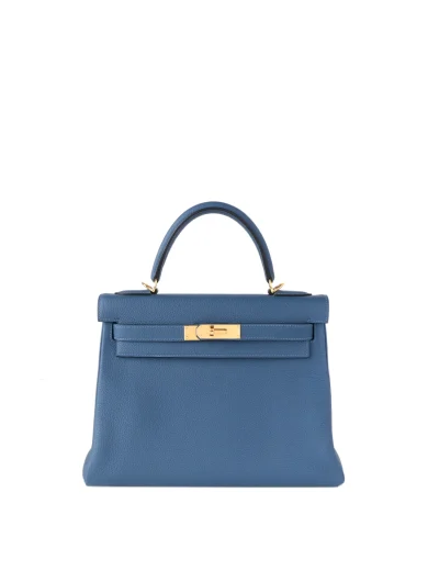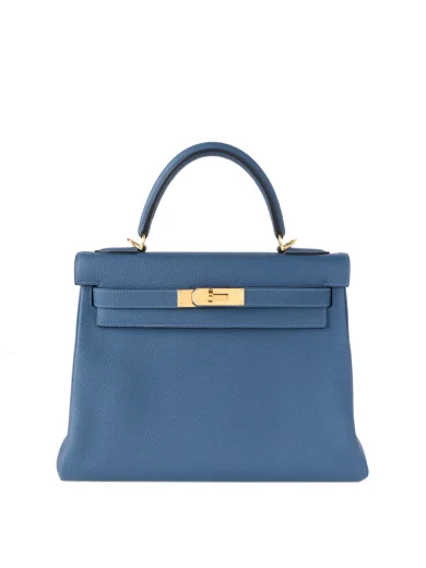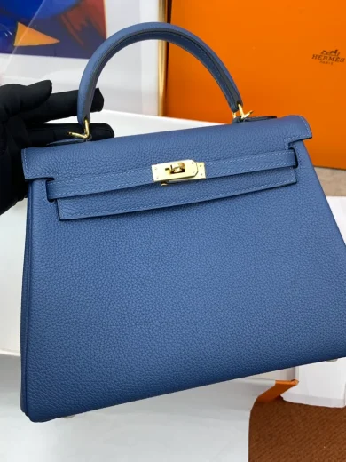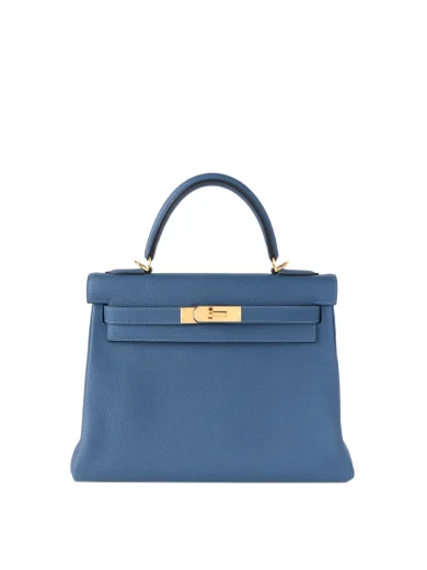 HERMES KELLY 32 TOGO RETOURNE LEATHER GOLD HARDWARE BLUE AGATE