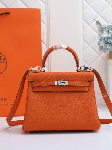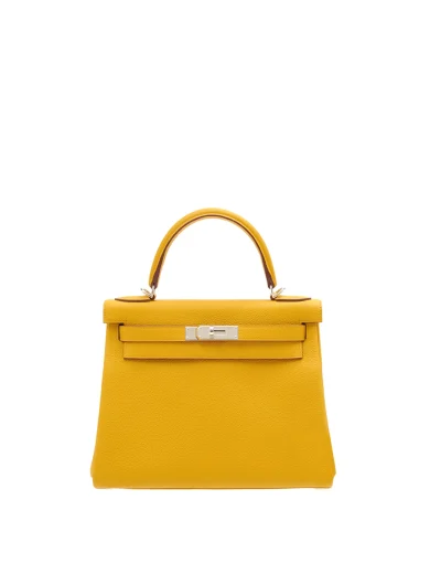HERMES KELLY 25 TOGO RETOURNE LEATHER SILVER HARDWARE FEU