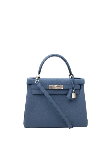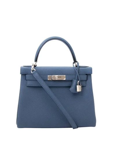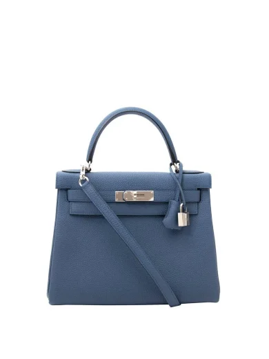 HERMES KELLY 28 TOGO RETOURNE LEATHER SILVER HARDWARE BLUE AGATE