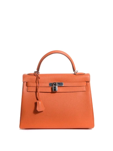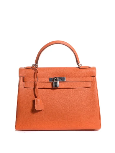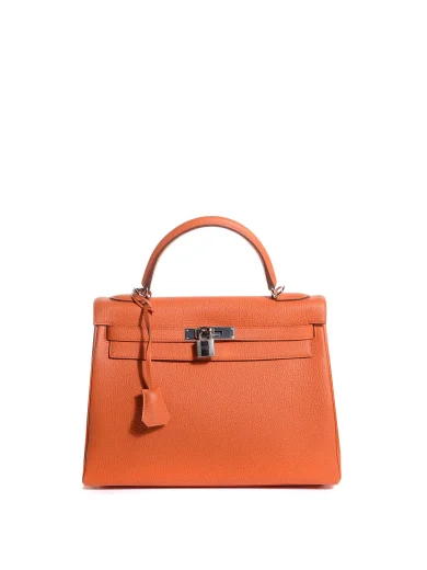 HERMES KELLY 32 TOGO RETOURNE LEATHER SILVER HARDWARE FEU