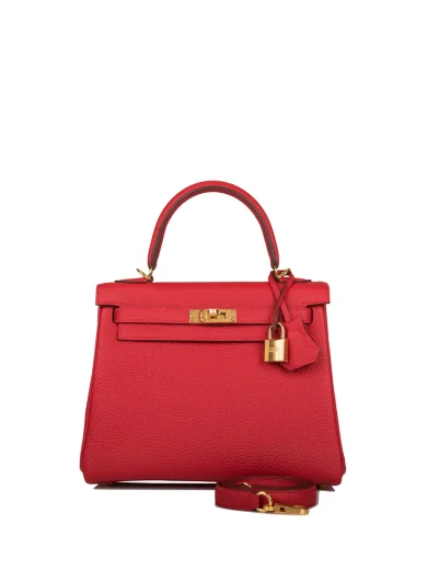 HERMES KELLY 25 TOGO RETOURNE LEATHER SILVER HARDWARE ROUGE CASAQUE