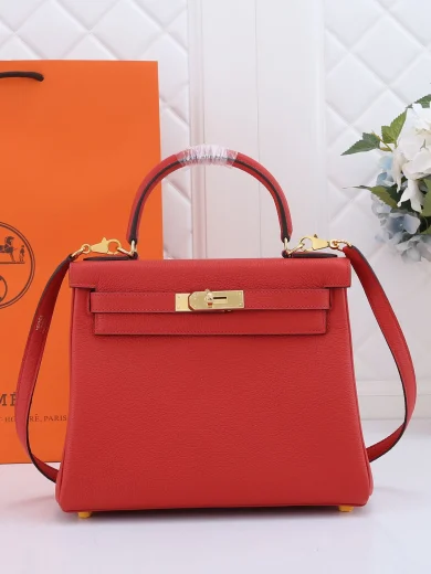 HERMES KELLY 28 TOGO RETOURNE LEATHER GOLD HARDWARE ROUGE CASAQUE