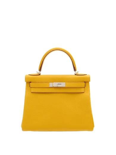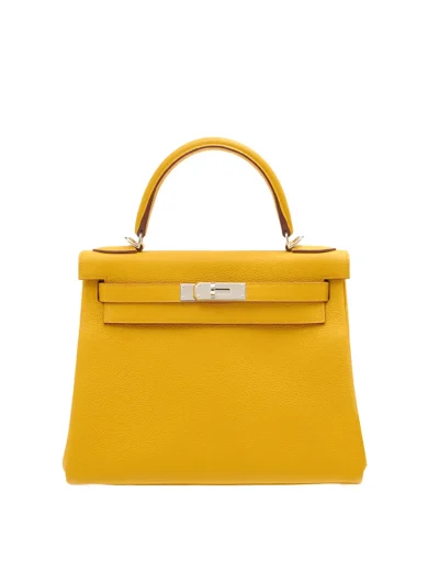 HERMES KELLY 28 TOGO RETOURNE LEATHER SILVER HARDWARE FEU