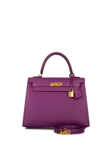 HERMES KELLY 25 EPSOM SELLIER LEATHER GOLD HARDWARE PURPLE