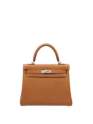 HERMES KELLY 25 EPSOM SELLIER LEATHER SILVER HARDWARE FEU