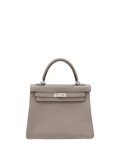 HERMES KELLY 25 TOGO RETOURNE LEATHER SILVER HARDWARE BETON