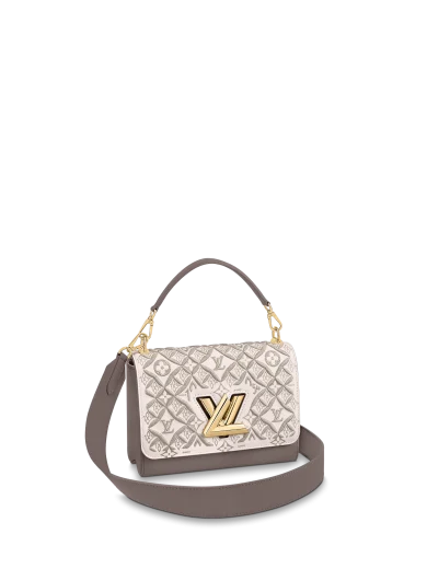 LOUIS VUITTON TWIST MM HANDBAG EMBROIDERED SMOOTH CALFSKIN ECRU TAUPE M59694