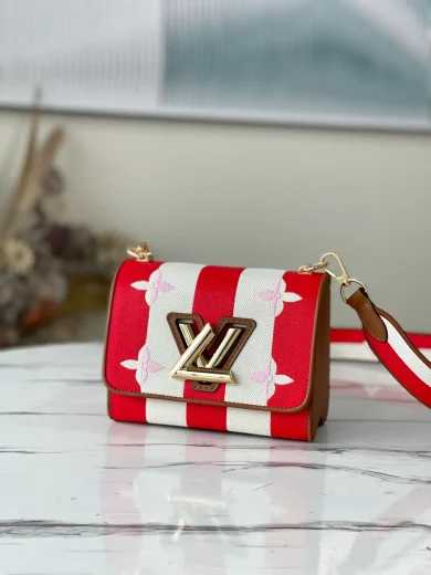 LOUIS VUITTON TWIST PM HANDBAG EMBROIDERED CANVAS AND CALF LEATHER RED M57722
