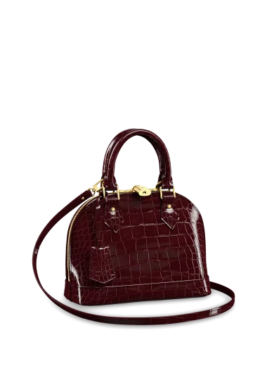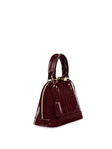 LOUIS VUITTON ALMA BB HANDBAG BRILLIANT ALLIGATOR LEATHER BORDEAUX BURGUNDY N90898