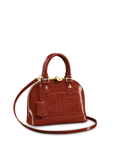 LOUIS VUITTON ALMA BB HANDBAG BRILLIANT ALLIGATOR LEATHER CARMIN RED N97546