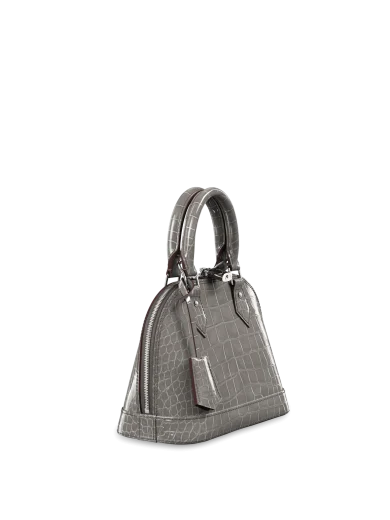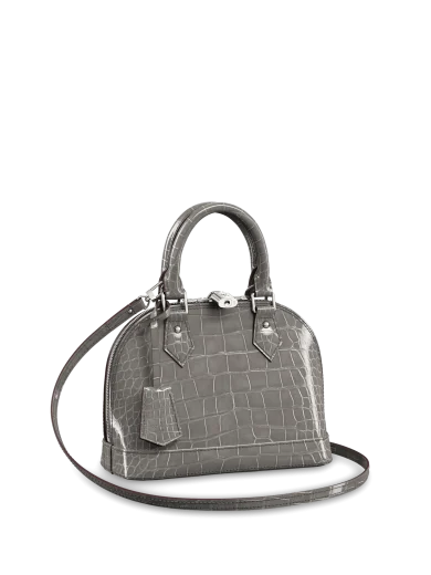 LOUIS VUITTON ALMA BB HANDBAG BRILLIANT ALLIGATOR LEATHER GREY N99543
