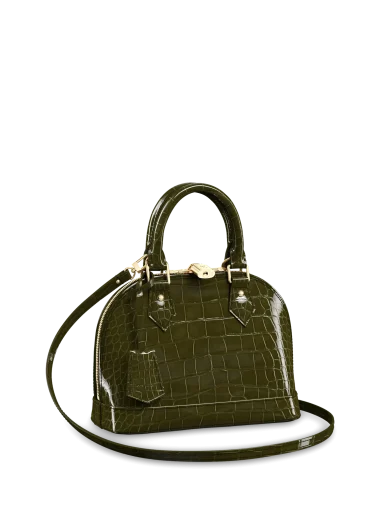 LOUIS VUITTON ALMA BB HANDBAG BRILLIANT ALLIGATOR LEATHER KHAKI N96612