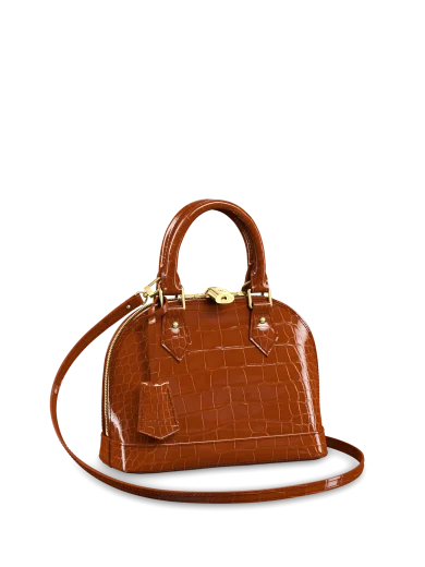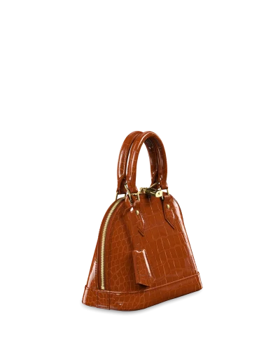 LOUIS VUITTON ALMA BB HANDBAG BRILLIANT ALLIGATOR LEATHER FAUVE BROWN N93336