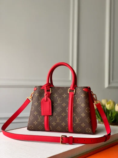 LOUIS VUITTON SOUFFLOT BB HANDBAG MONOGRAM COATED CANVAS CERISE RED M44818