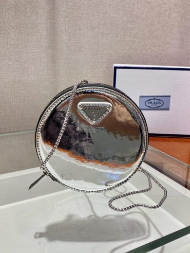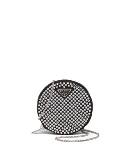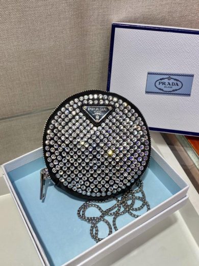 PRADA ROUND SATIN MINI-POUCH WITH ARTIFICIAL CRYSTALS 1NR003