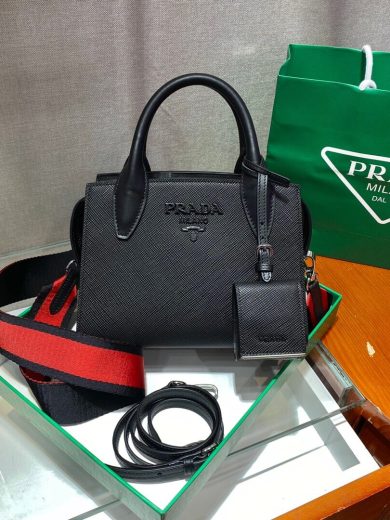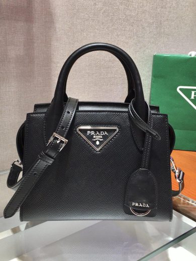 PRADA SAFFIANO LEATHER PRADA MONOCHROME BAG BLACK 1BA269