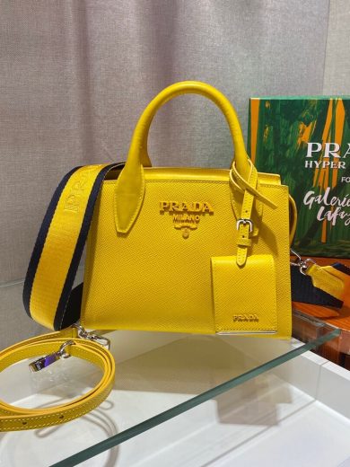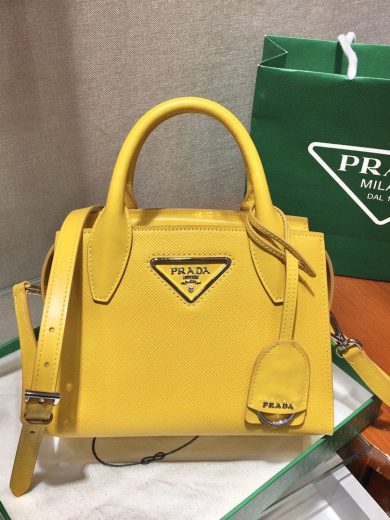 PRADA SAFFIANO LEATHER PRADA KRISTEN HANDBAG SUNNY YELLOW 1BA269