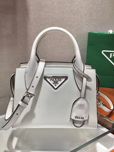 PRADA SAFFIANO LEATHER PRADA KRISTEN HANDBAG WHITE 1BA269