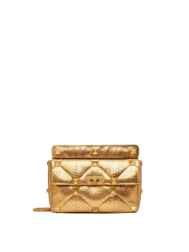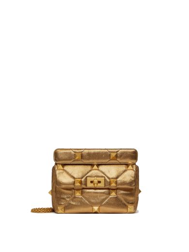 VALENTINO MEDIUM ROMAN STUD THE SHOULDER BAG IN METALLIC NAPPA WITH CHAIN BRASS WW2B0I82IETKM5