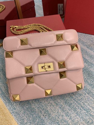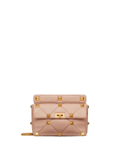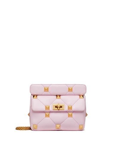 VALENTINO MEDIUM ROMAN STUD THE SHOULDER BAG IN NAPPA WITH CHAIN PINK WW2B0I82BSFM26